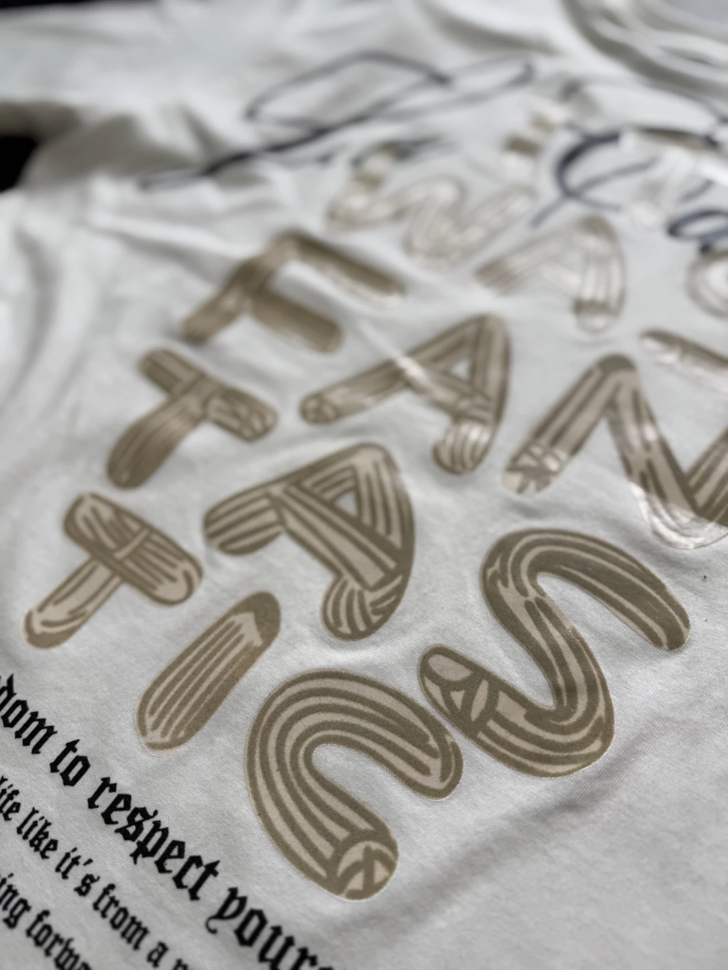 Lo que la hace especial es su maxi estampa en la espalda, realizada con un innovador doble procesamiento termofusionado plastificado premium, que aporta textura y durabilidad. Además, cuenta con un detalle de arte pequeño en el frente, que suma un toque sofisticado y moderno.